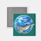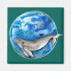 Pintura de aquarela original de Sandra Gale, apresentando uma baleia-jubarte nadando em frente a um globo aquático azul representando a Terra. Design perfeito para observadores de baleias, mergulhadores, conservacionistas e aqueles que amam baleias.