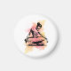 Design of a ballerina kneeling during her recital. Image created with yellow and pink clouds of color in the background, blending into the ballerina figure.