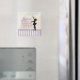 Um ímã bonito que diz: "Dance seus problemas para longe". Projetado com uma silhueta de bailarina em fundo bonito. Esta elegante dançarina de balé está em pé nos dedos, apontada com os braços esticados graciosamente. O fundo é composto por um padrão de aparência vintage shabby com flores. A parte inferior do design tem faixas de lavanda de estilo vintage alternando em cores escuras e claras.