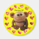 Engraçado Monkey Love Magnet: Faça seus próprios ímãs personalizados como favores de festa de aniversário, presentes de novidade ou como uma imã de geladeira engraçada para seu melhor amigo ou macaco. Este macaco de desenho cercado por um círculo de 15 corações aquarelas pode ser completamente personalizado. Atualmente diz: "Sou Bananas 4 U".... mas faça isso e edite o texto para fazer sua própria mensagem especial. Para alterar a cor do plano de fundo, pressione o botão "personalizar" para exibir o design também. Divirta-se! Você também pode colocar sua foto no lugar do macaco.