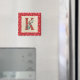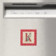Projetada para a moderna decoração temática rústica e country, esta carta ilustrada/inicial apresenta um fundo de madeira leve com madeira vermelha de celeiro Carta K acentuada por um tronco aquoso de folhas de eucalipto, e uma engraçada borda de impressão paisley paisley.
