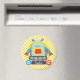 Imã Bandas brancas, azuis, e robôs amarelos;