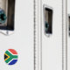 Esta design apresenta a bandeira nacional da África do Sul (oficialmente a República da África do Sul), que é o país mais ao sul da África. Cerca de 80% dos sul-africanos são de ascendência negra africana, enquanto a restante população é composta por grandes comunidades de ancestrais europeus, asiáticos e multirraciais. A África do Sul tem três capitais: Pretória executiva, Bloemfontein judicial e Cidade do Cabo legislativo. A cidade mais populosa é Joanesburgo; outras grandes cidades são Durban, East London, Pietermaritzburg, Port Elizabeth, Soshanguve e Vereeniging. A África do Sul é frequentemente referida como a "nação arco-íris" para descrever a diversidade multicultural do país, especialmente no acordar do apartheid.