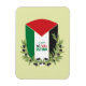 "A bandeira palestina cercada por ramos de oliveira com a frase 'Nós Iremos Retornar."