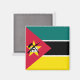 A bandeira de Moçambique foi adotada em 1º de maio de 1983. Inclui a imagem de uma AK-47 com uma baioneta ligada ao barril e é a única bandeira nacional do mundo a apresentar um rifle tão moderno. A bandeira é baseada na bandeira da Frente de Libertação Mozambicana (FRELIMO), o principal partido político em Moçambique. A bandeira da FRELIMO, usada por um breve período após o país ter se tornado independente de Portugal, parece a bandeira atual, mas não possui o emblema, com faixas verdes, pretas e amarelas separadas por fimbriações brancas e um triângulo vermelho no assoalho. Os negros, verdes e amarelos derivaram da bandeira do Congresso Nacional Africano, usada na África do Sul. Na independência, as cores foram rearranjadas para formar a bandeira nacional, em diagonais emanados do assalto superior. Sobre isso havia uma roda branca contendo a enxada, o rifle, o livro e a estrela que apareciam na bandeira atual. A bandeira foi alterada em 1983, as cores foram dispostas em faixas horizontais e a estrela do marxismo ficou maior. Foram apresentadas propostas para uma nova bandeira não partidária. Verde significa a riqueza da terra, as fimbriações brancas significam paz, o negro representa o continente africano, o amarelo simboliza os minerais do país, e o vermelho representa a luta pela independência. O rifle representa defesa e vigilância, o livro aberto simboliza a importância da educação, a enxada representa a agricultura do país, e a estrela simboliza o marxismo e o internacionalismo