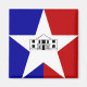 Magnet com a bandeira de San Antonio, Texas. Uma bandeira azul e vermelha com estrela branca e uma ilustração de Álamo no meio