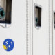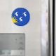 Magnet com design com uma bandeira do condado histórico de Merioneth, no País de Gales, Excelente-Bretanha; bandeira azul-azure com três cabras brancas e sol amarelo
