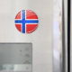 Mostre o seu orgulho nacional pelo belo país da Noruega com esta bandeira redonda brilhante.