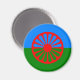 Personalize facilmente esta bandeira cigana romanichel, verde e azul, dos ciganos romanichéis romônios e viajantes com o seu próprio texto, usando o menu personalizado. A bandeira representa o verde da Terra e o azul do céu com uma tradicional roda de varões de caravana cigana, representando viagem.