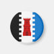 "Per pale sable and azure, em um assalto pálido, uma torre gula."