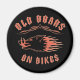 Logotipo fictício para os alunos do Velho Colégio: cabeça de varrasco com trilha flamejante e pinstripe gráfica, com "Velhinhos - On Bikes" em letras góticas, em preto/vermelho. T-shirts, suores, cartas, canecas, botões, presentes.