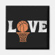 Design de texto "Love" com basquete laranja e decoração de rede de basquete
