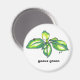 ímã de geladeira com impressão de um desenho original de manjericão orgânico, uma pequena joia fazendo seu trabalho, e uma mensagem cajun