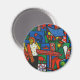 Uma pintura de uma dança tradicional de batak, um grupo étnico que vive no norte de Sumatera, ao redor do lago Toba. A pintura aquosa é muito colorida com fundo azul, estilo batik.