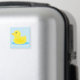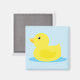 Borracha amarela adorável, pata sobre fundo azul e bolhas de sabão. Design perfeito para o seu quarto ou banheiro. Arte © CoraçãoDesigns bloqueados