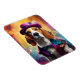 Um Beagle brincalhão vestido com uma fantasia vibrante e branca contra um pano de fundo brilhante e mágico. Essa design encantadora é perfeita para amantes de os animais.