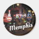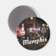 Foto da noite ao longo da rua Beale em Memphis, Tennessee com paus e placas de neon. O nome Memphis está em branco na parte inferior.