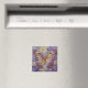 A magnet with an illustration of a beautiful gold and purple butterfly surrounded by white and purple flowers. It's done with an impasto style and just emanates beauty and grace.