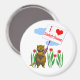 Magnet com minha design de um personagem de castor segurando uma placa que diz "Eu coração Saskatchewan".