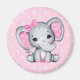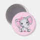 Um ímã com uma ilustração de aquarela de elefante rosa giro. Ela tem orelhas bolinhas brancas e cor-de-rosa e um arco de fita rosa bonito em cima de sua cabeça.