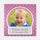 Design cor-de-rosa com padrão de Bolinhas elegante com nome de bebê personalizado e data de nascimento e foto. Imprima os seus entes queridos com esta design elegante e elegante. Um presente perfeito para qualquer novo pai! Totalmente personalizável. Fácil de usar e fácil de personalizar. Faça o pedido hoje!