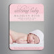 Anuncie a chegada de sua filhinha à família e amigos com este anúncio de nascimento do ímã fotográfico "bem-vindo bebê". Cor de fundo rosa com texto de cinza de pewter quente. Nota, a cor de fundo pode ser personalizada para coordenar com a sua fotografia.
