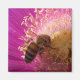 Uma abelha de mel coletando pólen de uma flor rosa grande. Um belo ímã de abelhas para qualquer amante da natureza!