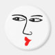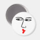 Um Magnet com um rosto robusto e beijo.