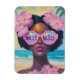 retrato espantoso e vibrante de uma na moda que veste óculos de sol cor-de-rosa sobredimensionados refletindo uma praia tropical sonhadora. Cercado por flores de hibisco macio e colocado contra um fundo oceânico turquesa, este trabalho de arte captura a essência do verão, a beleza e o empoderamento. Perfeito para amantes de praia, colecionadores de arte de moda e decor de temas tropicais.