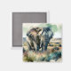 Magnet com elefante da savana africana em africano ou na Ásia caminhando nos prados. Bonito ilustração do ai feita no estilo de aquarela.