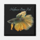 Belo Peixe de Combate Siamês - Betta Halfmoon Amarelo Amarelo Fundo Negro - O Peixe de Combate Siamês é um peixe água fresca nativo do Sudeste Asiático e é um peixe aquário mundialmente popular por causa de sua cor variada. Esta é chamada de betta da meia lua por causa da forma da sua barbatana que se parece com uma barbatana caudal em forma de - "D" que forma um ângulo de 180°, as bordas da cauda são nítidas e heteros.