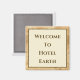 Bem-vindo ao Hotel Earth o ímã é um design em um fundo dourado com texto. Este ditado motivacional foi recebido em meditação. ©2019 Patricia Fogelsonger Esta design faz parte da série Sayings By Patricia.