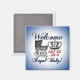 Carruagem de bebê e coroa real, estilo de corte de madeira, com "Welcome Royal Baby" em azul e branco. Uma lembrança excelente do bebê real britânico que foi nascer em 22 de julho de 2013! Celebrar o novo nascimento com esta atraente memorobilia paraphernalia do novo Royal Baby boy a William Windsor e Kate Middleton.
