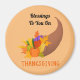 Uma fotografia bonita de um buzino cheio de comida, é apresentada neste ímã redondo para Ação de Graças. Com a mensagem, "Bênçãos a Você pelo Obrigado SGIVING", faz deste ímã uma decoração de excelente ou dá como presente para o feriado de Ação de Graças!