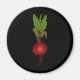 Uma ilustração vegetal vintage de uma beterraba é colorida em vermelhos e verdes.