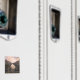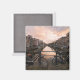Fotoímã de Souvenir com algumas bicicletas trancadas no bar de uma ponte sobre o canal de Prinsengracht revestido por tradicionais estações de canal ao pôr do sol no centro da cidade de Amsterdã, na Holanda.