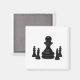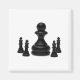 Grande peão de xadrez preto cercado por quatro pequenos reis de xadrez isolados sobre o fundo branco. Tomando a grandeza para a grandeza.
