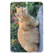 gato maravilhoso com olhos verdes sentados em uma parede, as folhas no fundo são coloridas pelo outono