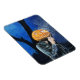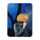 Um imã assustador do Dia das Bruxas com o trabalho de arte pastel, "O Maquinista Sem Cabeça". Esta ilustração apresenta um fantasma de cabeça de abóbora vestindo uma jaqueta de couro fumando um cigarro numa noite escura e fria de outubro. Arte original: Pastéis em papel. Copyright Dominic A. White. Todos os direitos reservados.