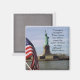 "A coragem é contagiosa. Quando um homem corajoso toma uma posição, os espinhos dos outros são muitas vezes sufocados." Billy Graham cita a estátua da liberdade com o ímã de fundo da bandeira americana.