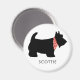 Este ímã apresenta um belo terror negro escocês vestindo uma bandana xadrez vermelha e branca. O texto abaixo diz "Scottie" e pode ser personalizado com o nome do seu próprio cão. Perfeito para amantes de cães de todas as idades! Projetado pelo artista © Tim Coffey.