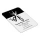 Cartão magnético comercial de ilustração de design de tesoura ultrararrombada e giros. Modelo de design personalizado standard para salões de beleza, cabeleireiros, artistas e designers de artesanato. Um cartão de aparência profissional de excelente preto e branco.
