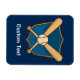 Ícone de beisebol com dois morcegos e uma bola sobre um escudo azul. Cor de fundo personalizada. Custom Text.
