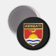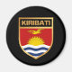 A bandeira nacional de Kiribati é infundida numa forma blindada com o nome do país adicionado acima da bandeira.