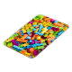Este design apresenta uma colagem de vários blocos de construção de brinquedos plásticos neon.