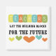 O texto multicolorido e o design de corações lê "Professores Lay The Building Blocks For The Future" em T-shirts, canecas, bolsas, botões, autocolantes, correntes-chave, cartões e outros itens excelente para professores, profissionais da educação ou qualquer pessoa que valorize professores e educação!
