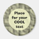 Modelo de ímã personalizado adicione suas próprias palavras, nome, slogan etc. Se você pressionar o botão "personalizar", também poderá alterar o estilo e o tamanho da fonte. O gráfico de fundo é 1200 pixels tão compatível com todos os tamanhos de botão, até mesmo com o tamanho colossal de 6".
