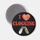 O clássico "I Love Clogging" em um ímã preto redondo com um coração rico e um par de calçados entupidos em branco. Excelente para que o dançarino de entupimento da sua vida apareça no frigorífico.