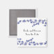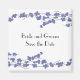 Flores azuis elegantes em galhos delicados. Um fundo de branco acentua os nomes da noiva e do noivo e a data do casamento. Personalizar conforme desejado.