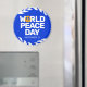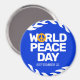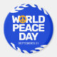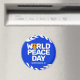 Celebre o Dia Internacional da Paz (também conhecido como Dia Mundial da Paz) no dia 21 de setembro com este ímã, que mostra um brilhante sinal de paz laranja em pé para a letra O no mundo, cercado por folhas de louros num fundo azul calmante. Design © W.H. Sim. Mais informações em zazzle.com/expressionsoccasions
